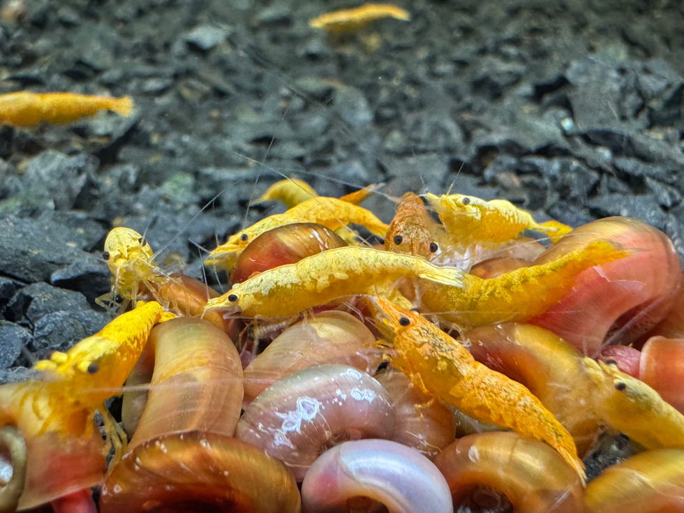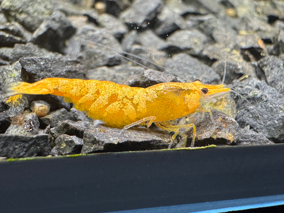 Je nach Tier und Lichteinfall wirkt dieser Überzug unterschiedlich intensiv und sorgt dafür, dass jede Garnele leicht individuell erscheint. Genau diese Kombination aus Orange und Creme macht die Crested Cream zu einer besonders spannenden und auffälligen Farbform innerhalb der Neocaridina.